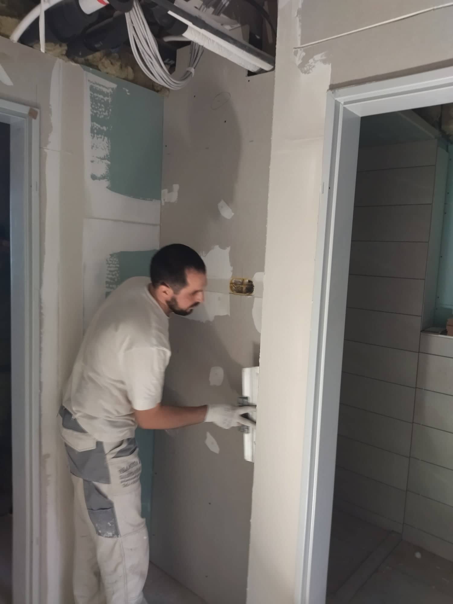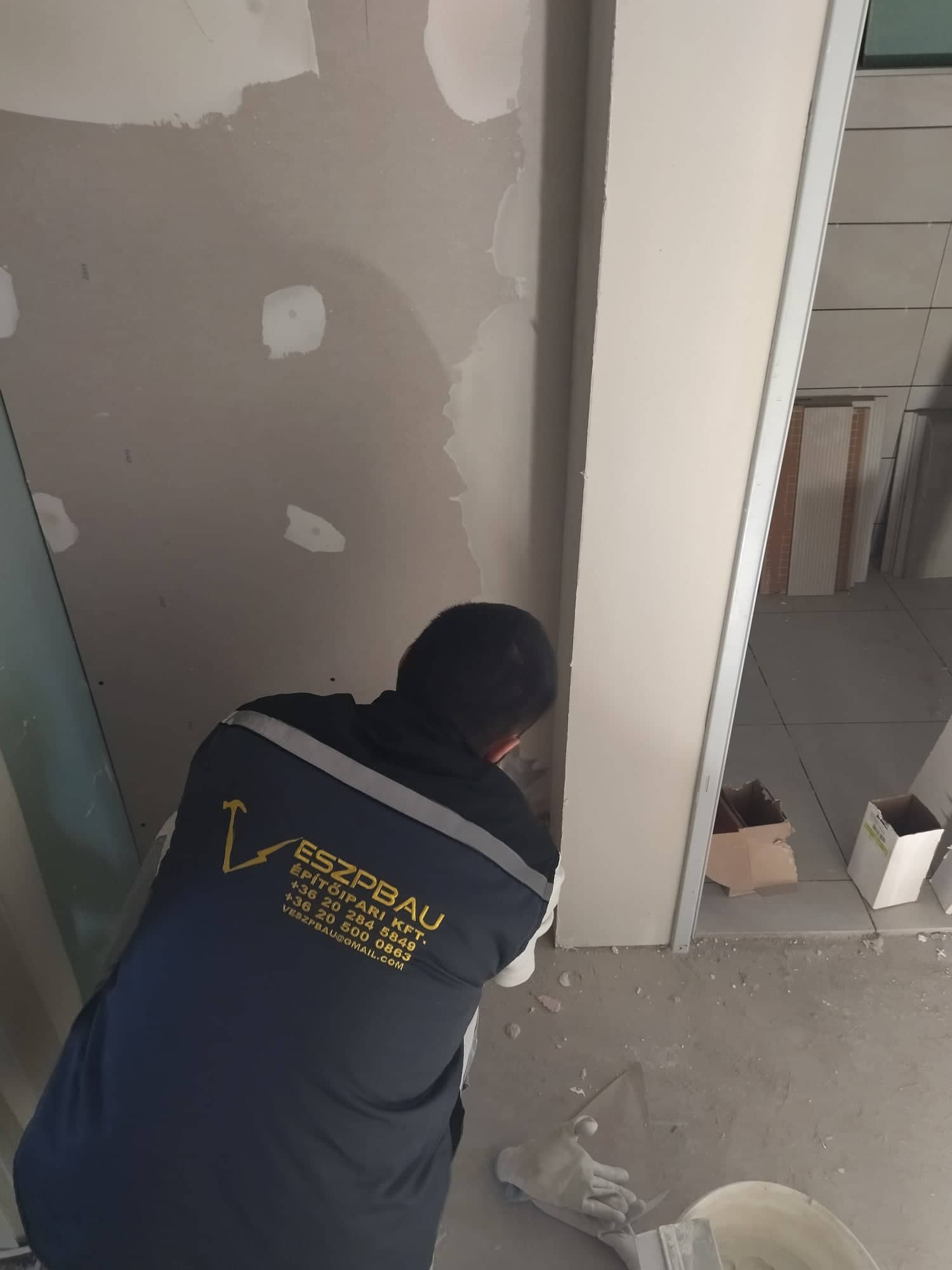 Budapest, Soroksári úti munkásszálló, glettelés-festés,